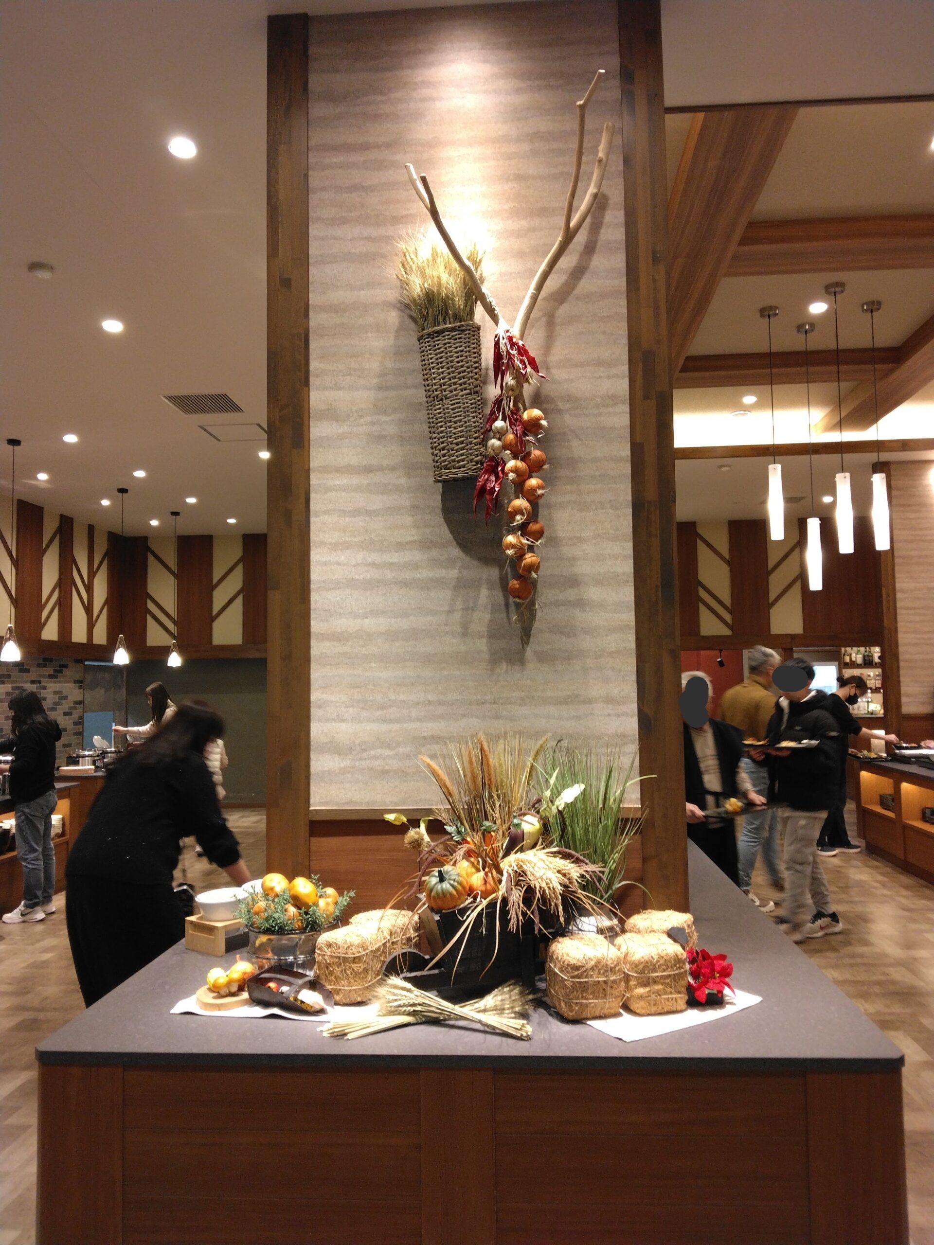 バイキング会場は清潔感があり、広々として温かみのある雰囲気でした