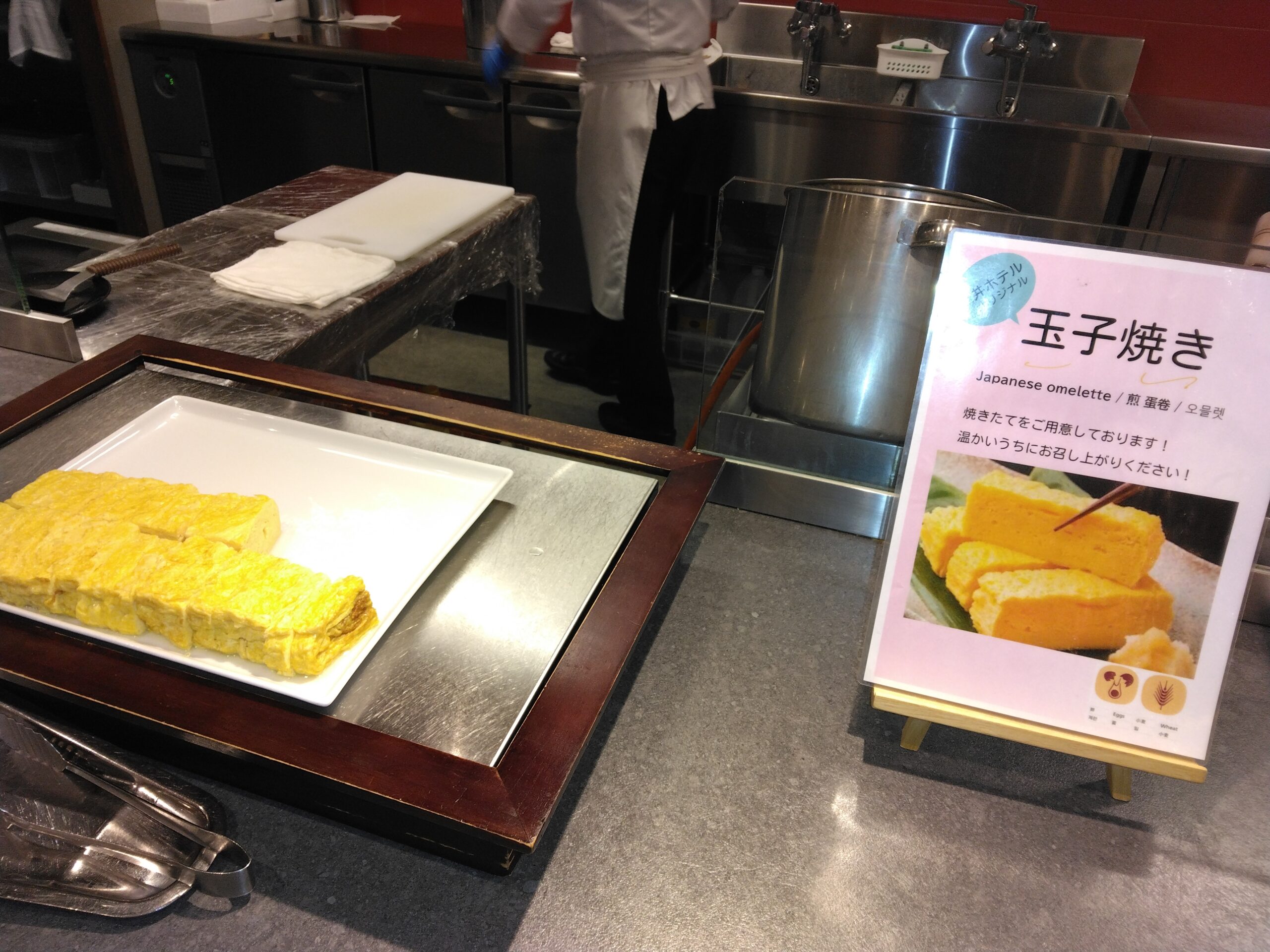 卵焼もライブキッチンで焼いてくれます。焼きたての卵焼きはアツアツのふわふわ